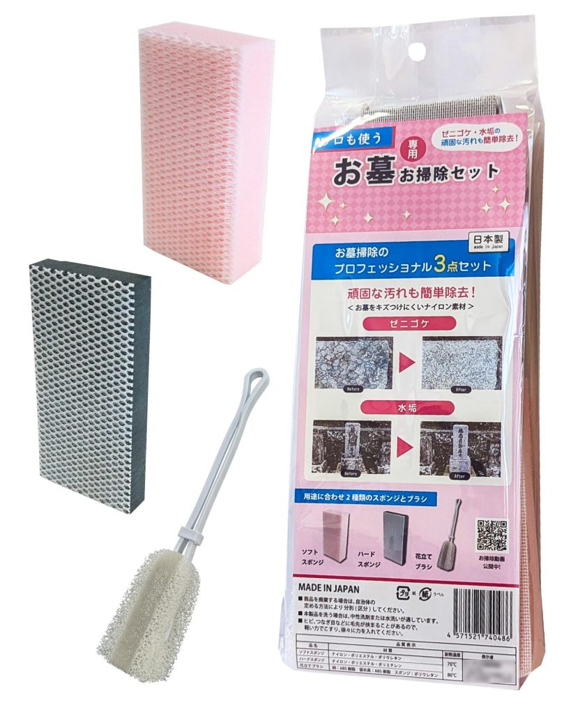 以下の画像は次のような お墓清掃道具・セットの例です: